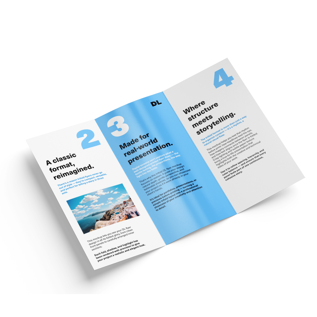 Brochure plegable de diseño profesional, perfecto para presentar servicios, productos o información corporativa de forma organizada y visualmente atractiva.